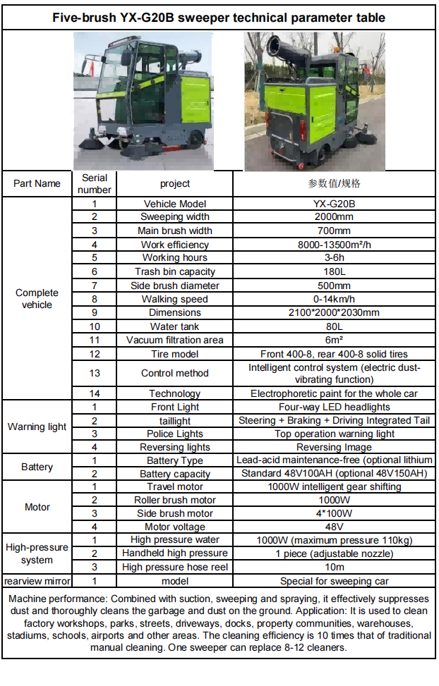 Перформанси на машината: Во комбинација со вшмукување, убедување и прскање, ефикасно се потиснува и темелно ги чисти ѓубрето и прашината на земја.
