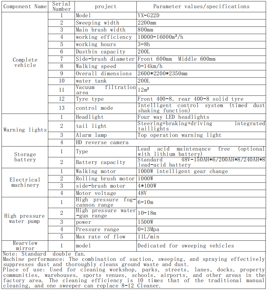 Место на употреба: Користено за чистење работилница, паркови, улици, ленти, пристаништа, сопственост Комуникации, магацини, спортски места, училишта, аеродроми и други области во областа на факторите. Ефикасноста на чистењето е 10 пати поголема од традиционалното прирачно расчистување, а еден чистач може да замени чистач од 8-12.