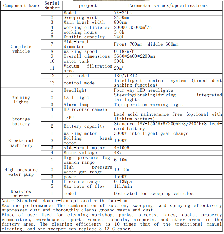 Место на употреба: Користено за чистење работилница, паркови, улици, ленти, пристаништа, сопственост Комуникации, магацини, спортски места, училишта, аеродроми и други области во областа на факторите. Ефикасноста на чистењето е 10 пати поголема од традиционалното прирачно расчистување, а еден чистач може да замени чистач од 8-12.