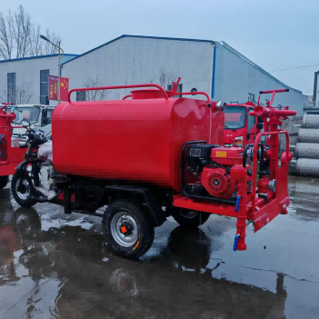 Со оглед на ниското одделение на руралните патишта и на долги растојанија од противпожарните станици, може да се користат мотоцикли со пожарни со три тркала како главна опрема на професионални пожарни бригади во населбата. Тие можат да носат повеќе резерви од возила со две тркала и се поприлагодливи на сложените услови на патот од противпожарните камиони со четири тркала, реализирајќи „во близина на полицијата за испраќање и брзо отстранување“.